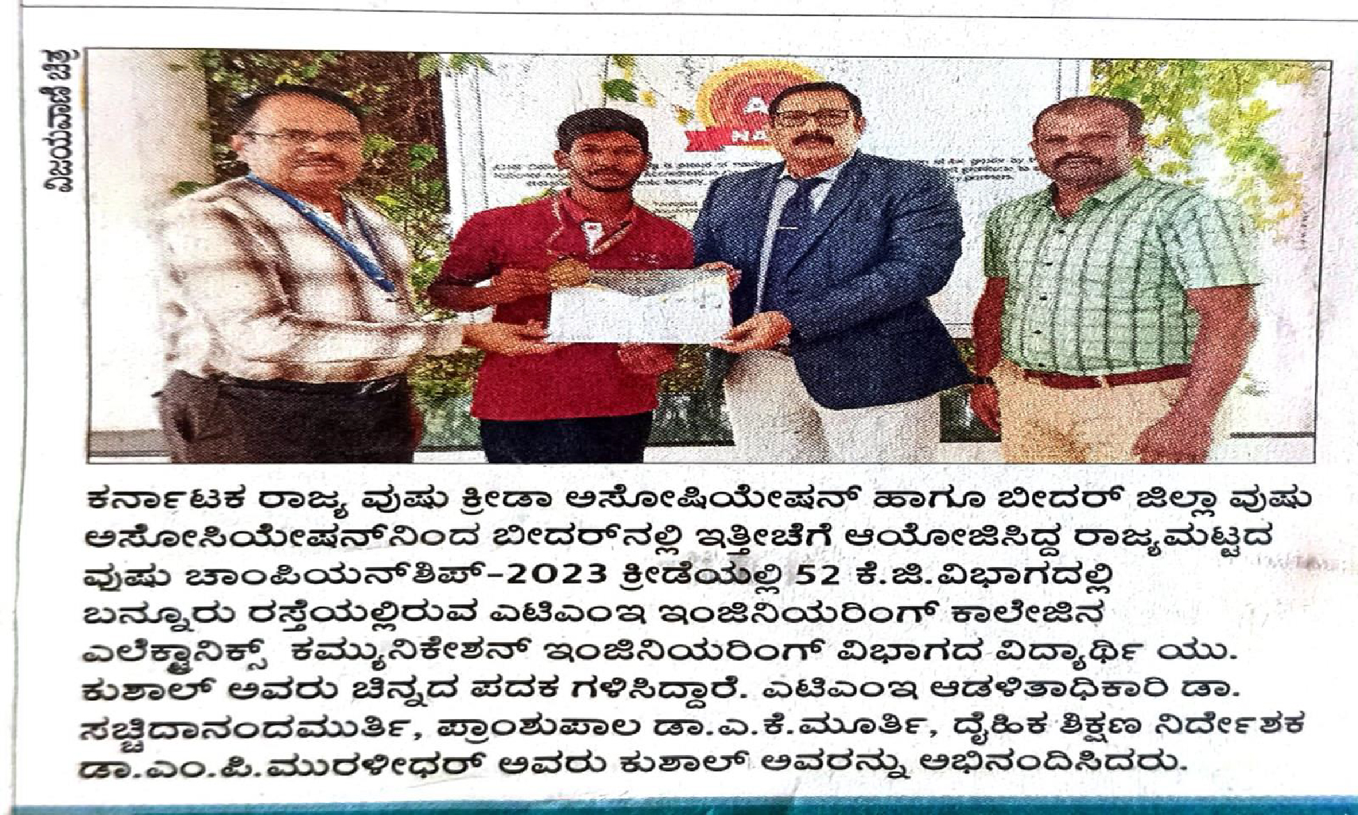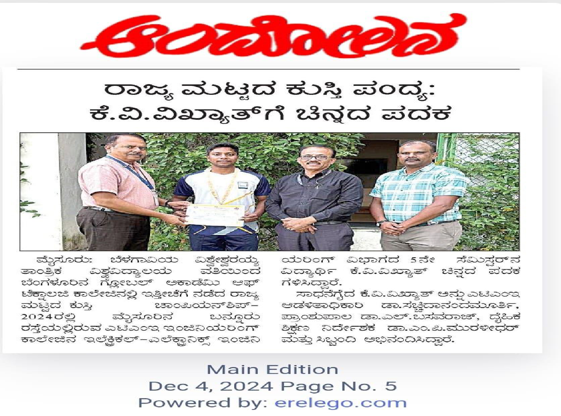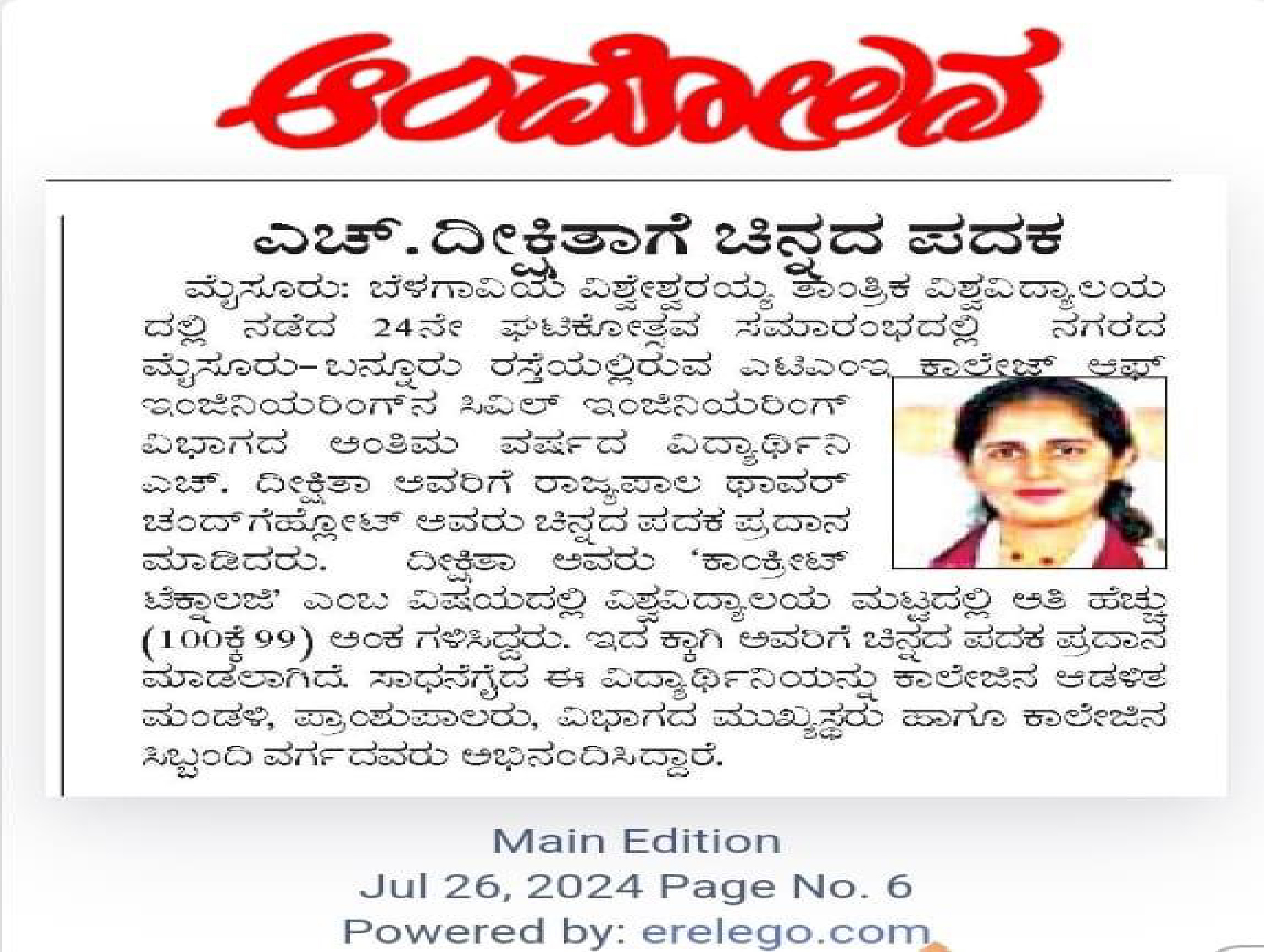 Gold Medal from VTU to Student