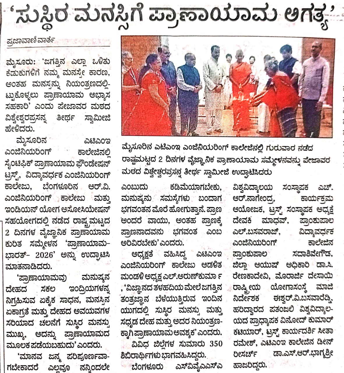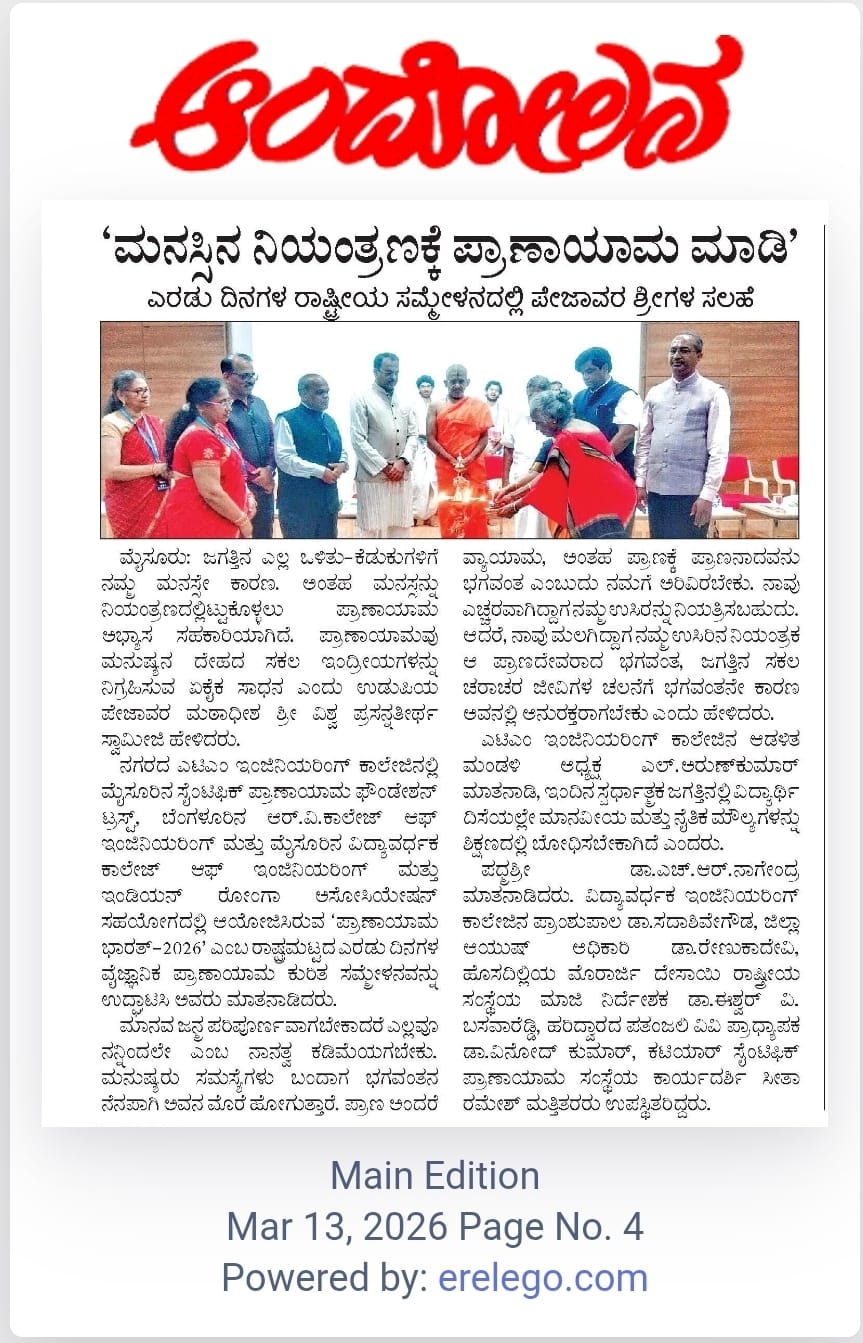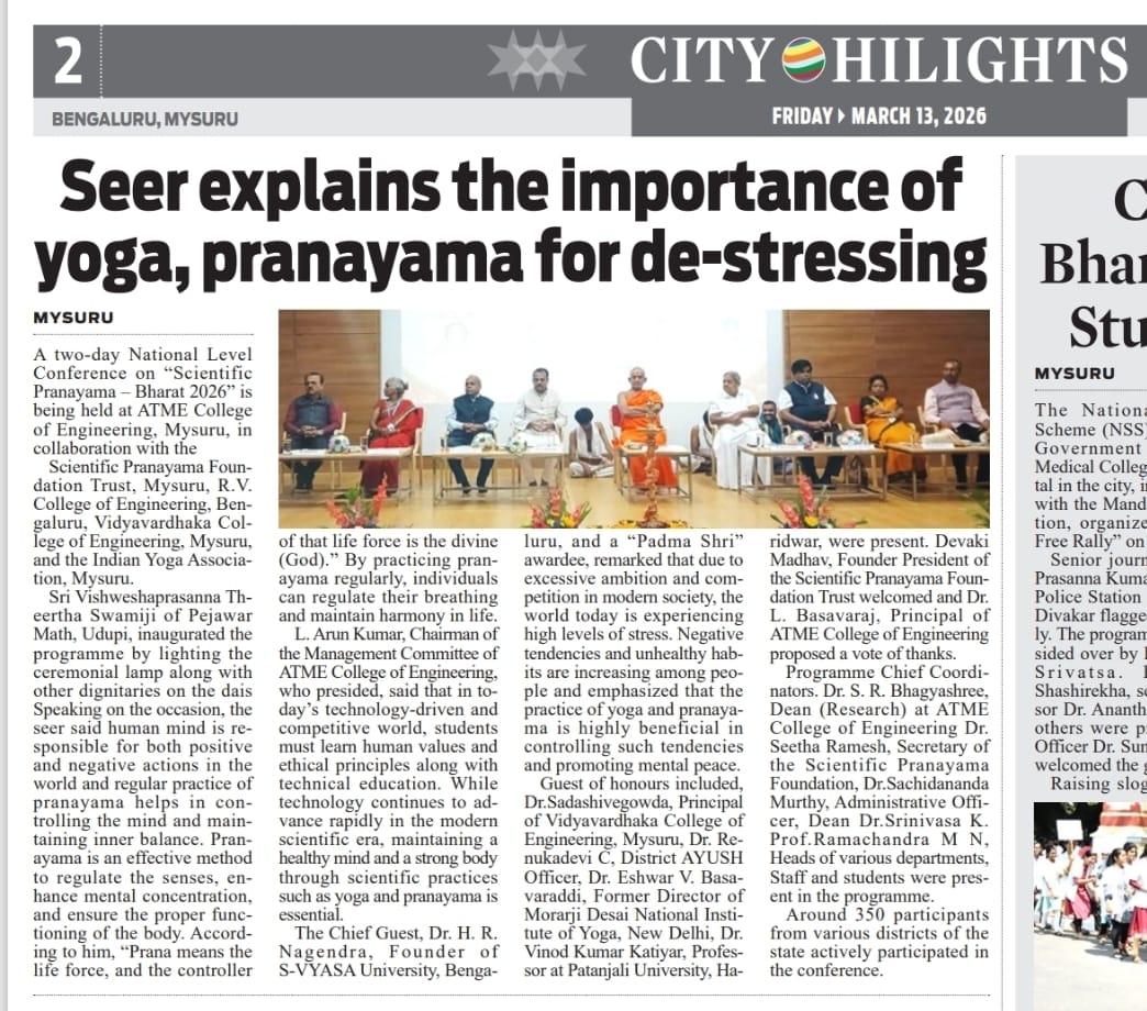 “ATMECE Mysuru Hosts National Conference on ‘Scientific Pranayama – Bharat 2026’ Highlighting the Role of Yoga in Stress Management.”