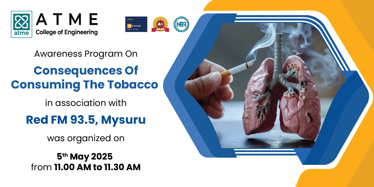With respect to the above-mentioned subject, .1 would like to bring your kind notice that, an awareness program to the students on Tobacco in association with Red FM-93.5 Mysuru, has been organized on 5th’ May 2025 (Thursday) from 11.00.AM to 11.30AM, in front of College Cafeteria.